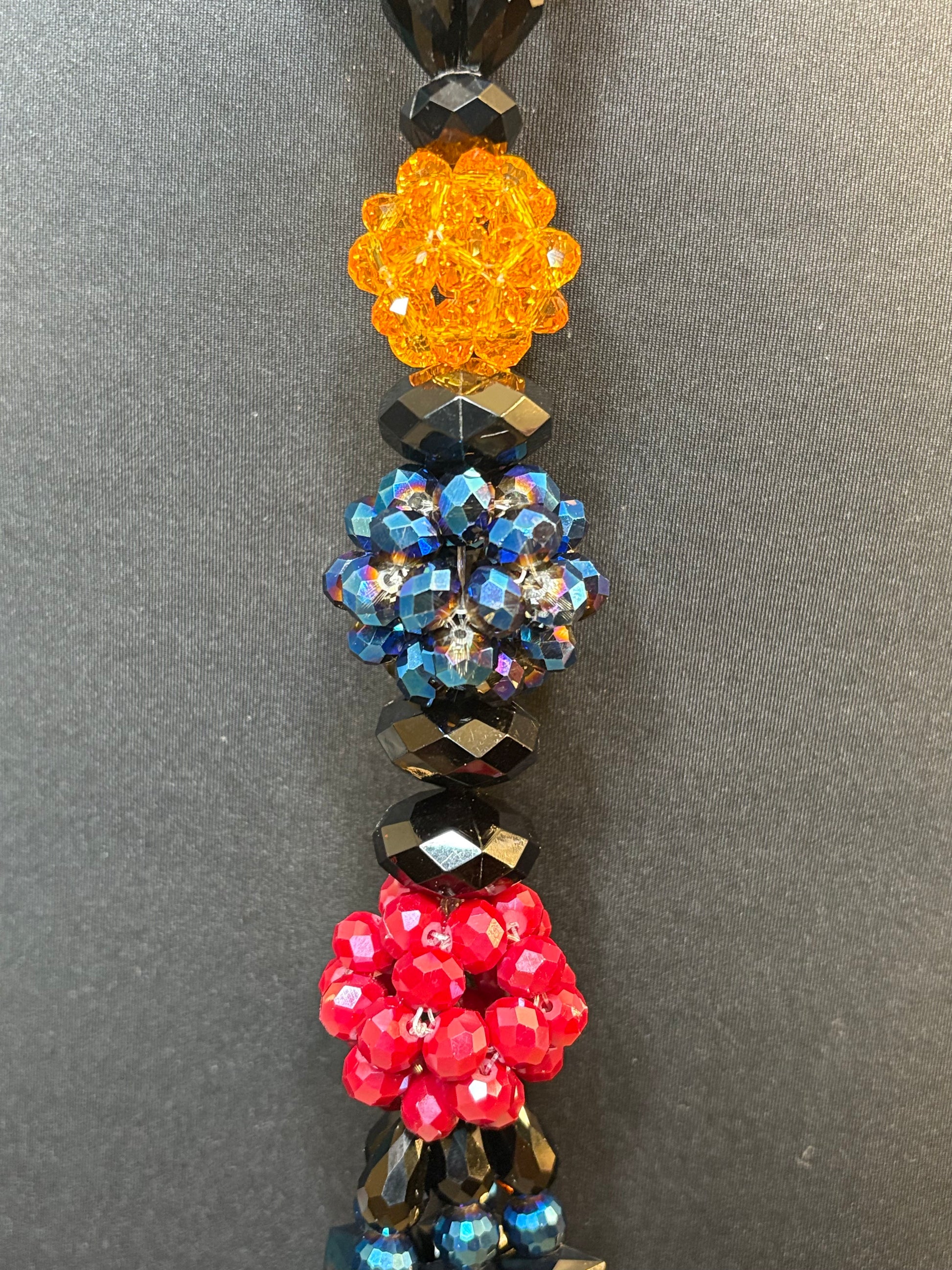 This handmade tassel necklace was carefully crafted with beautiful crystal (or rhinestone) beads. The model is wearing a 35-inch necklace design, but it can be altered to be longer or shorter.