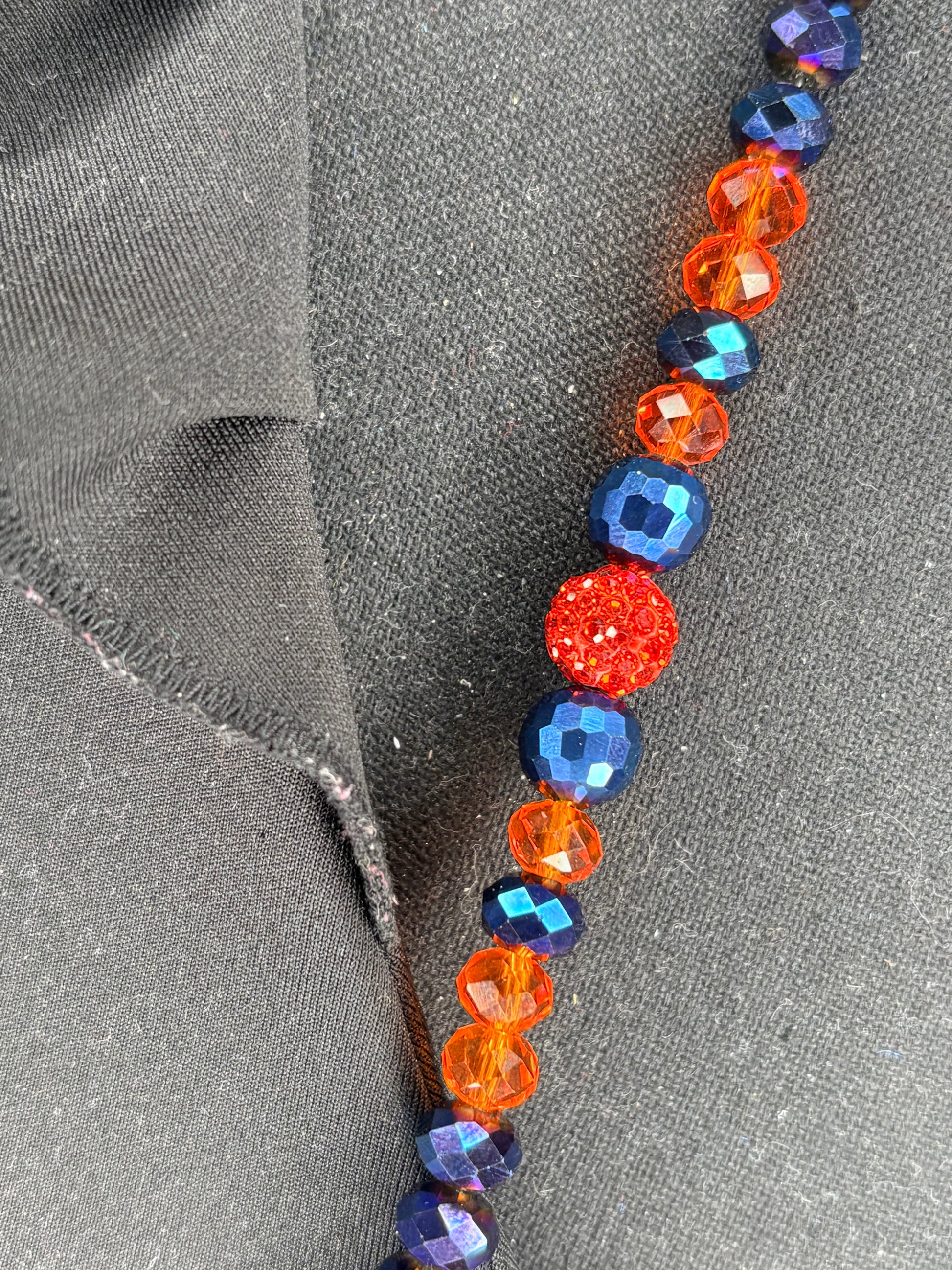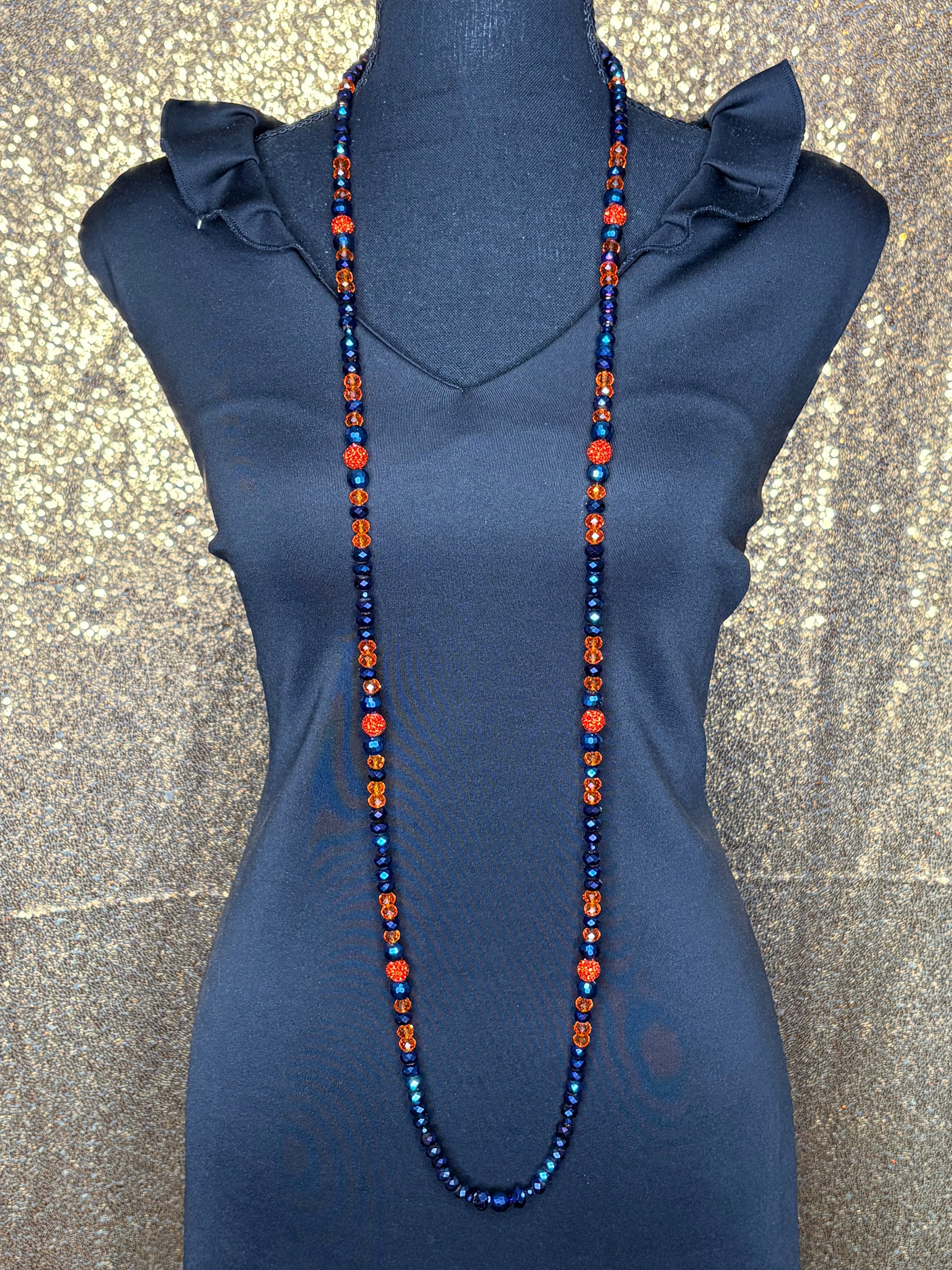 This handmade classic round necklace was carefully crafted with beautiful crystal and rhinestone beads. The model is wearing a 25 & 30-inch necklace design.