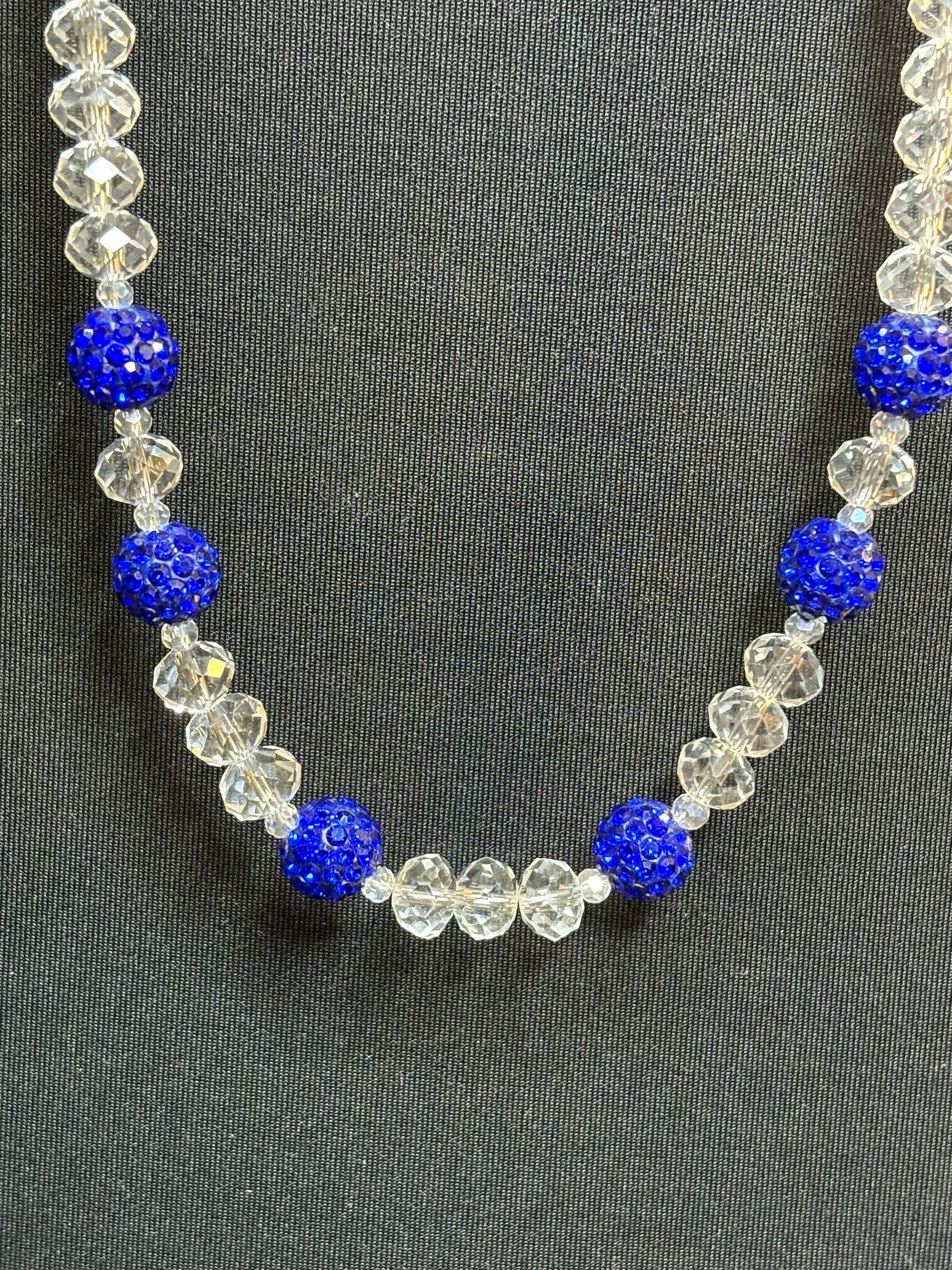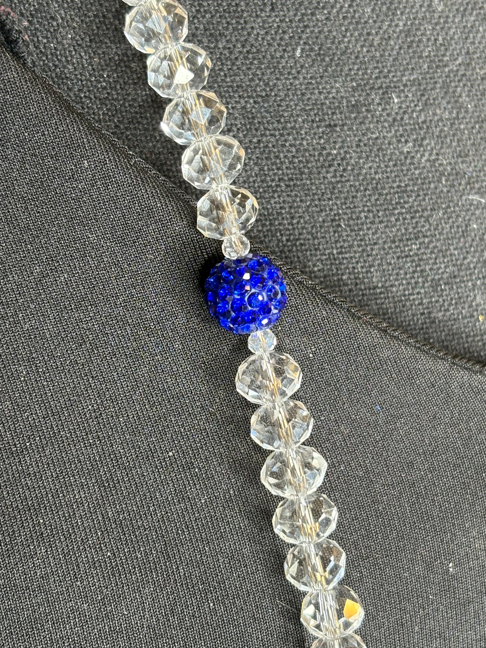This handmade classic round necklace was carefully crafted with beautiful crystal and rhinestone beads. The model is wearing a 30-inch necklace design.