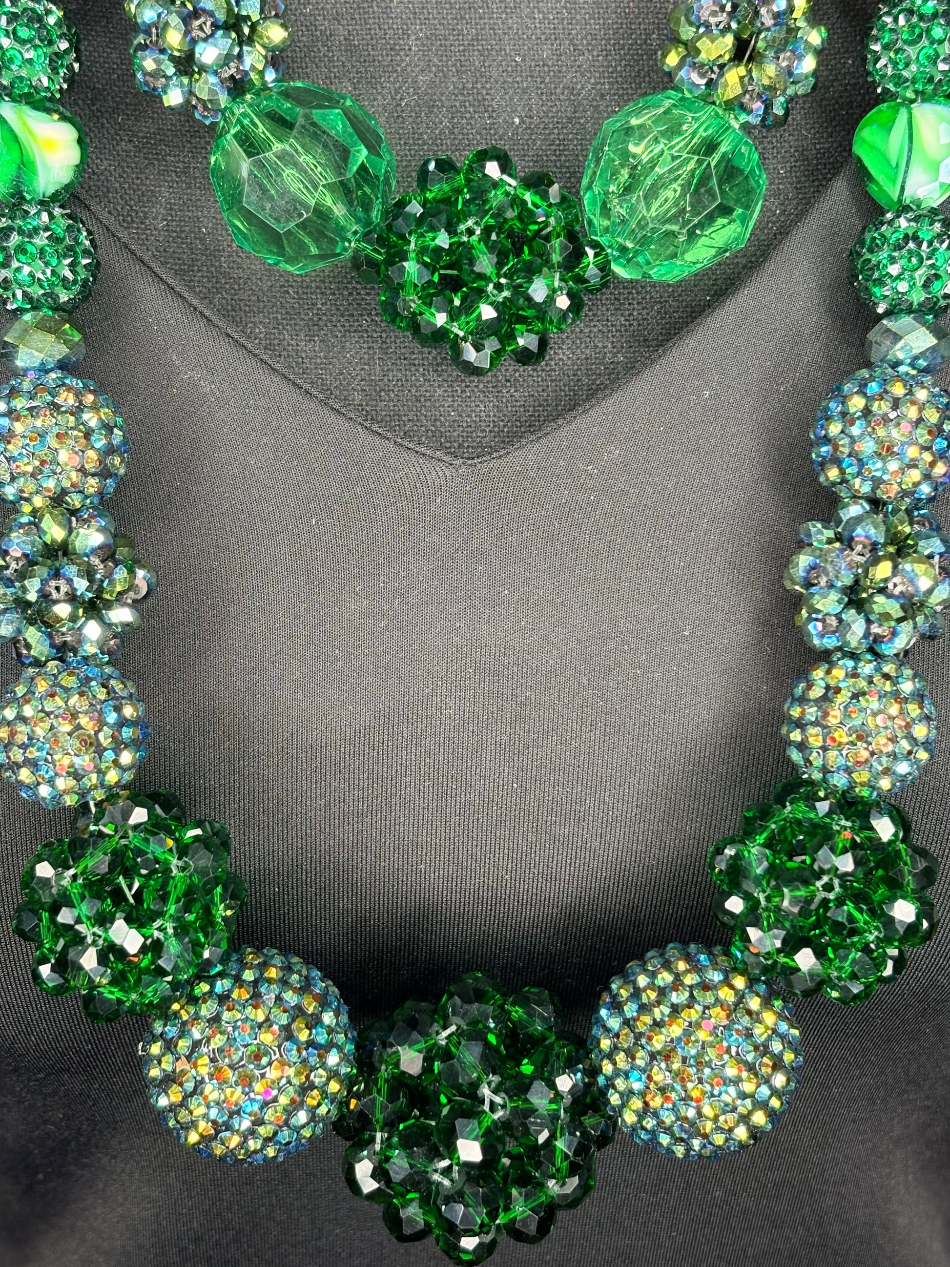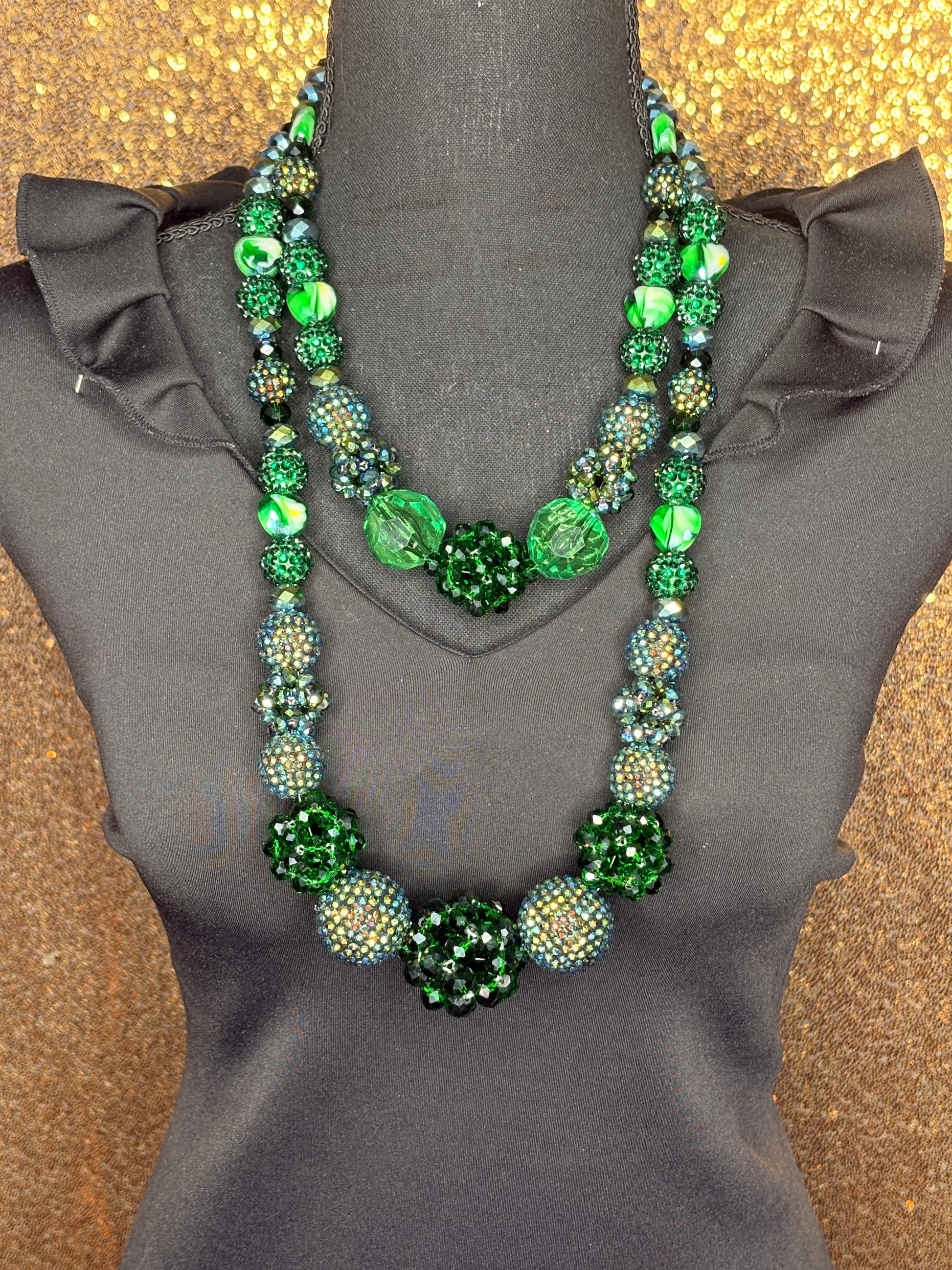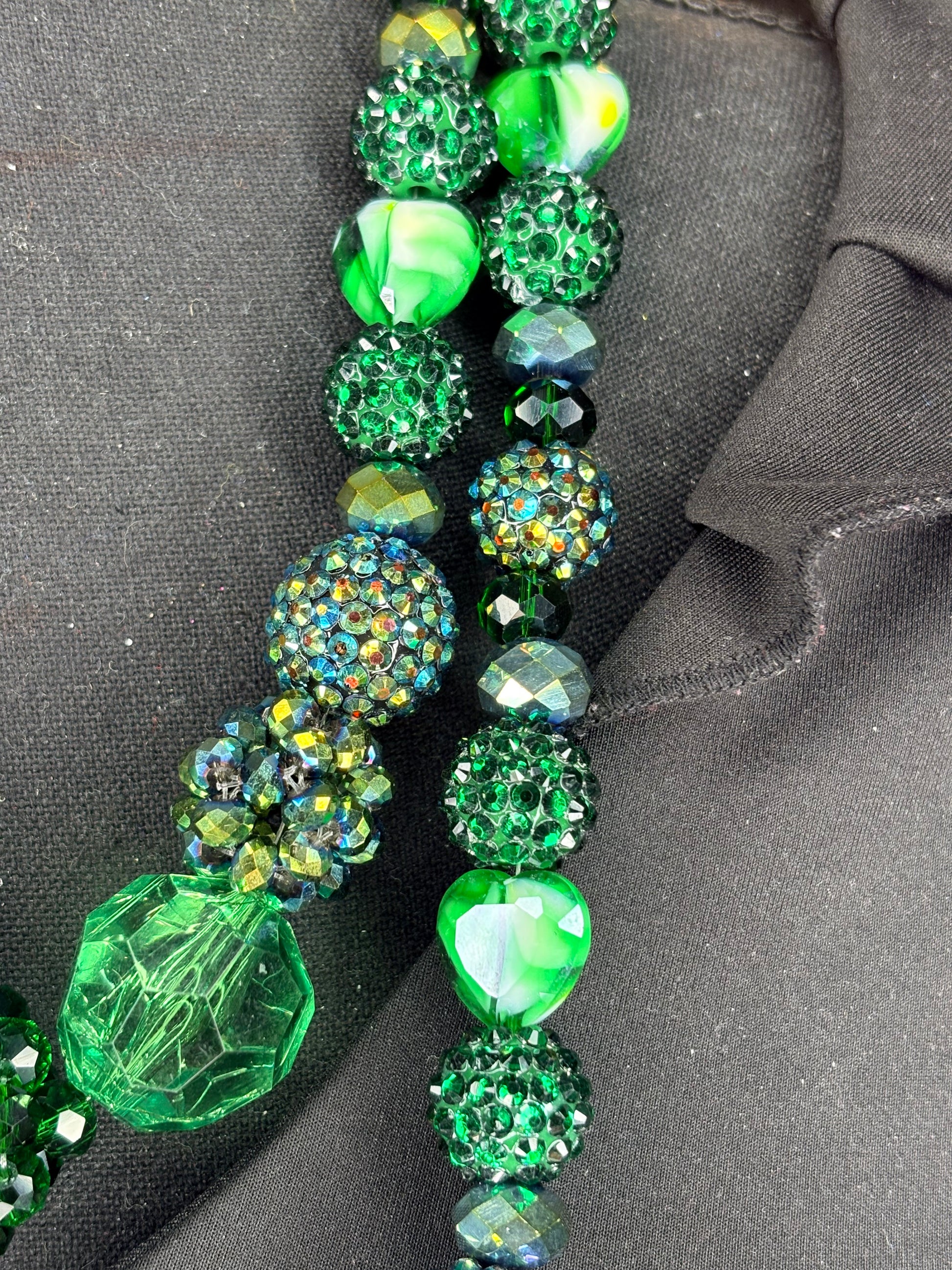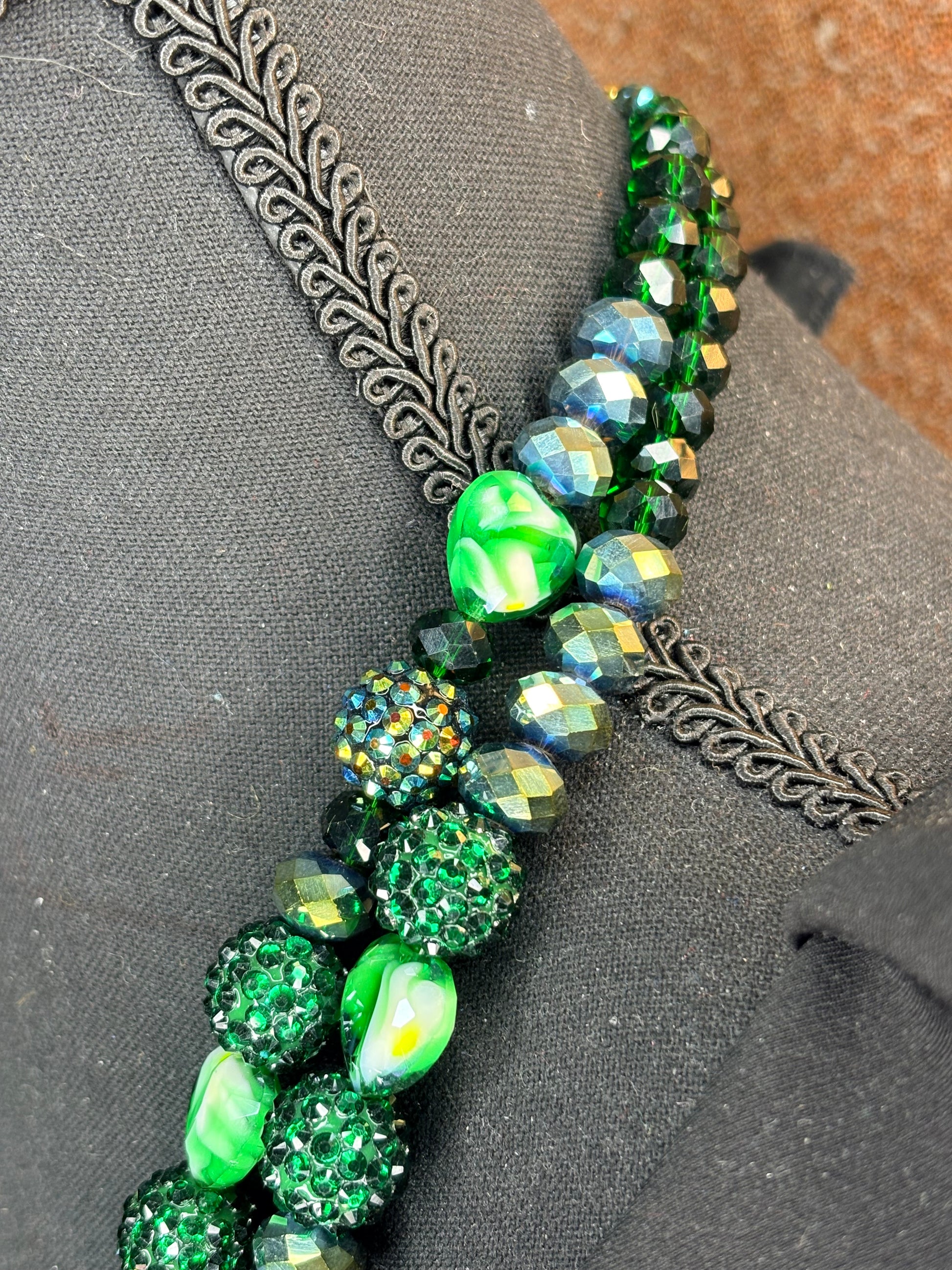 This handmade multiple strand necklace was carefully crafted with beautiful crystal (or rhinestone) beads. The model is wearing a 20-inch necklace design, but it can be altered to be longer or shorter.