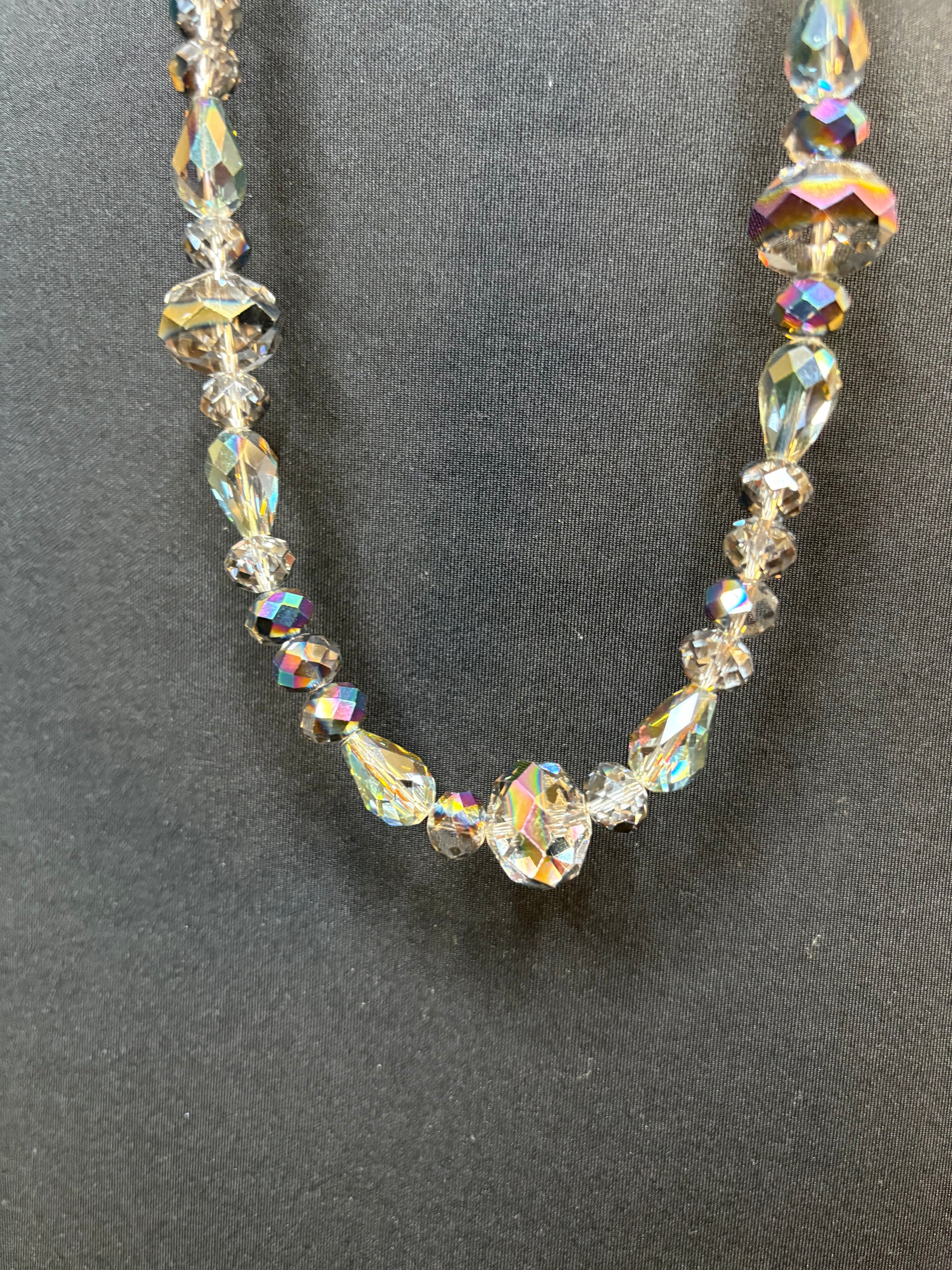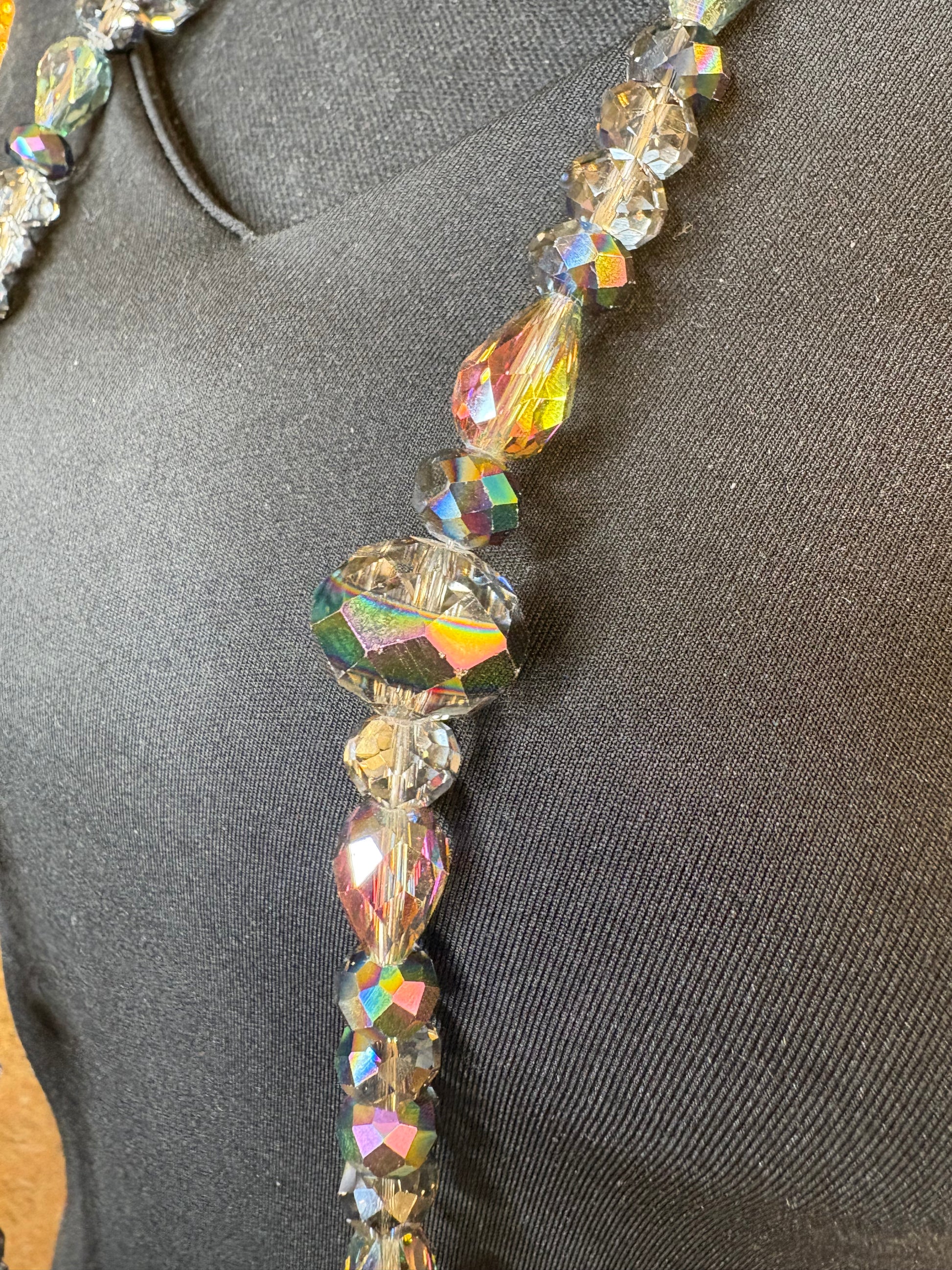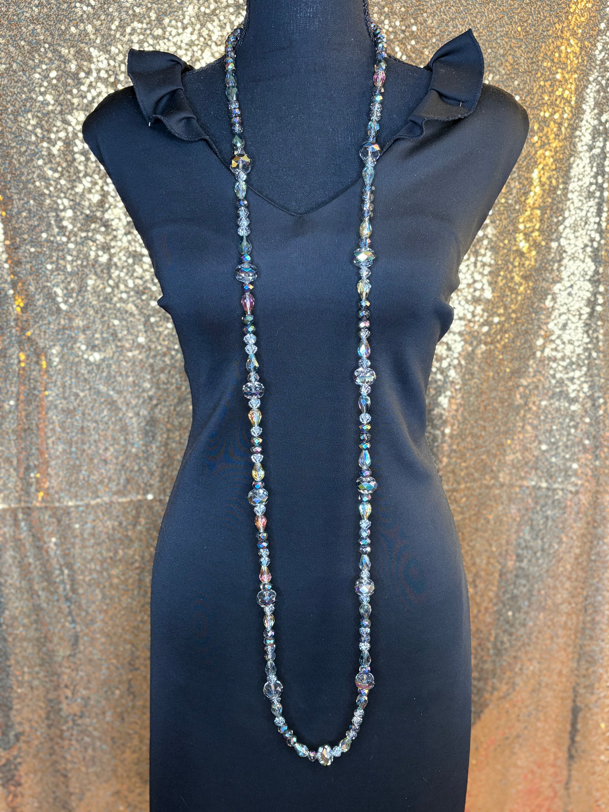 This handmade classic round necklace was carefully crafted with beautiful crystal (or rhinestone) beads. The model is wearing a 25-inch necklace design, but it can be altered to be longer or shorter.