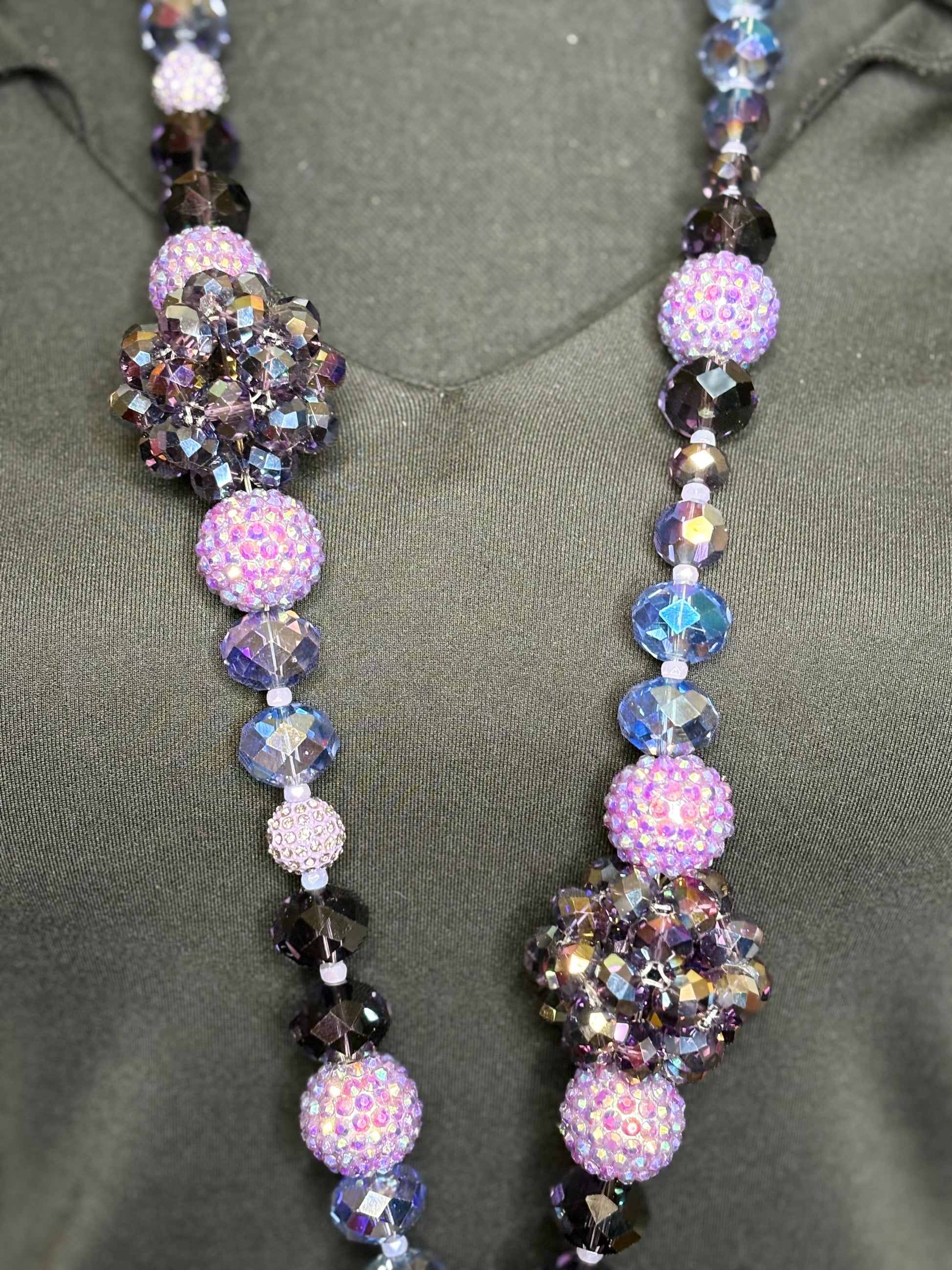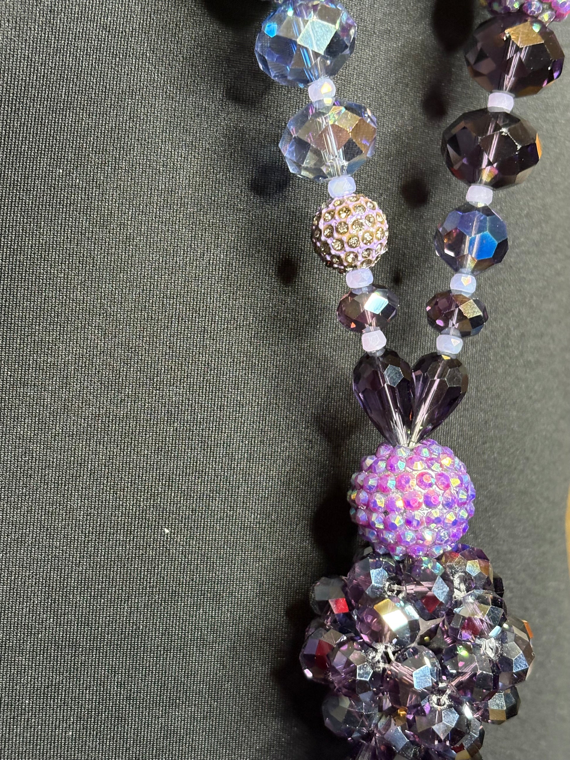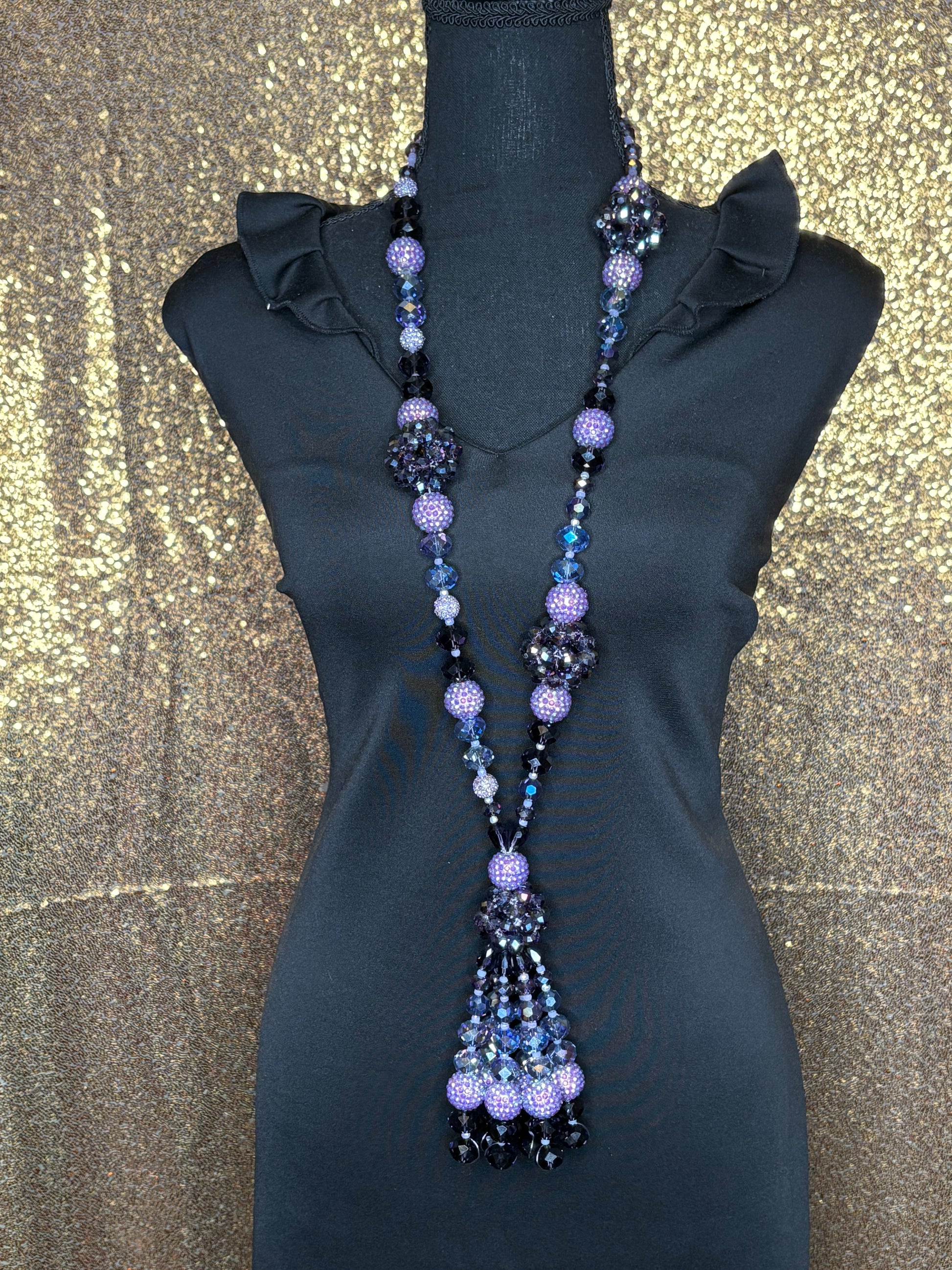 This handmade tassel necklace was carefully crafted with beautiful crystal (or rhinestone) beads. The model is wearing a 25-inch necklace design, but it can be altered to be longer or shorter.