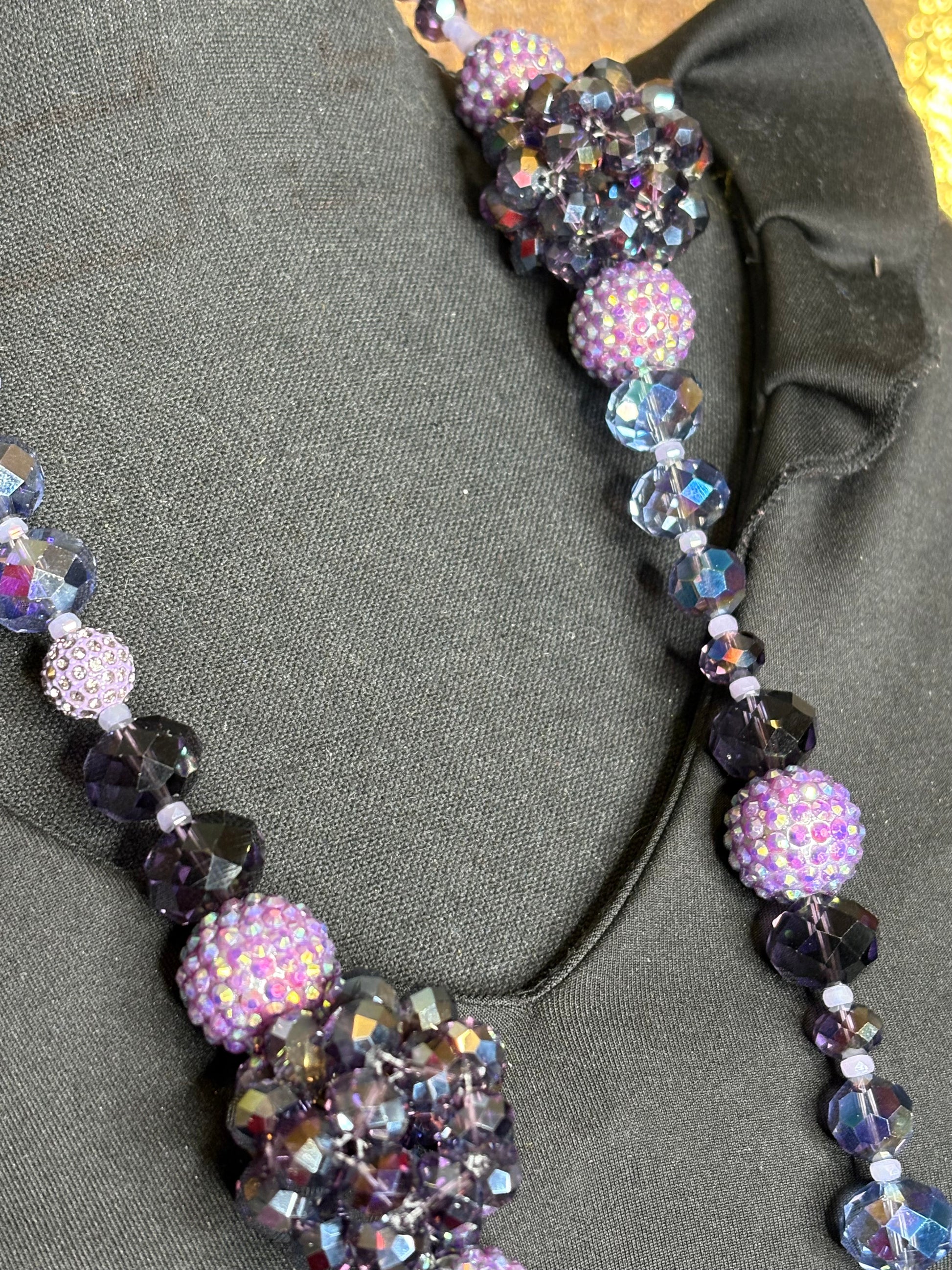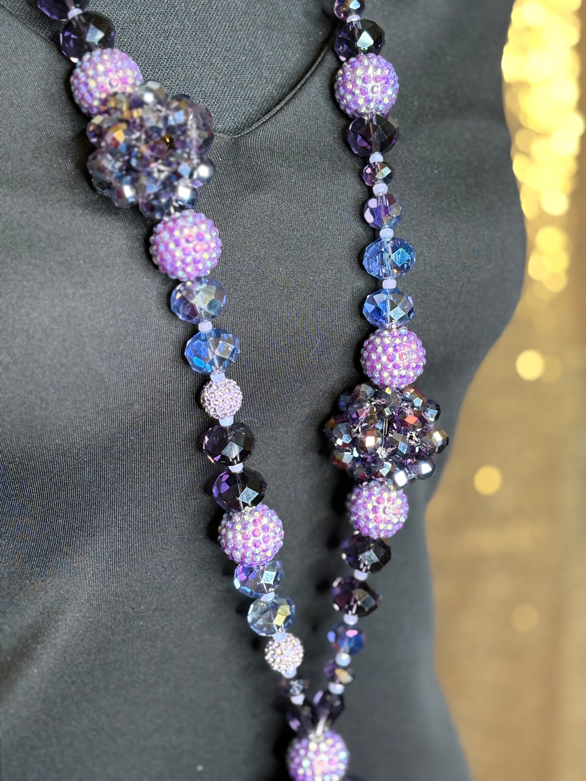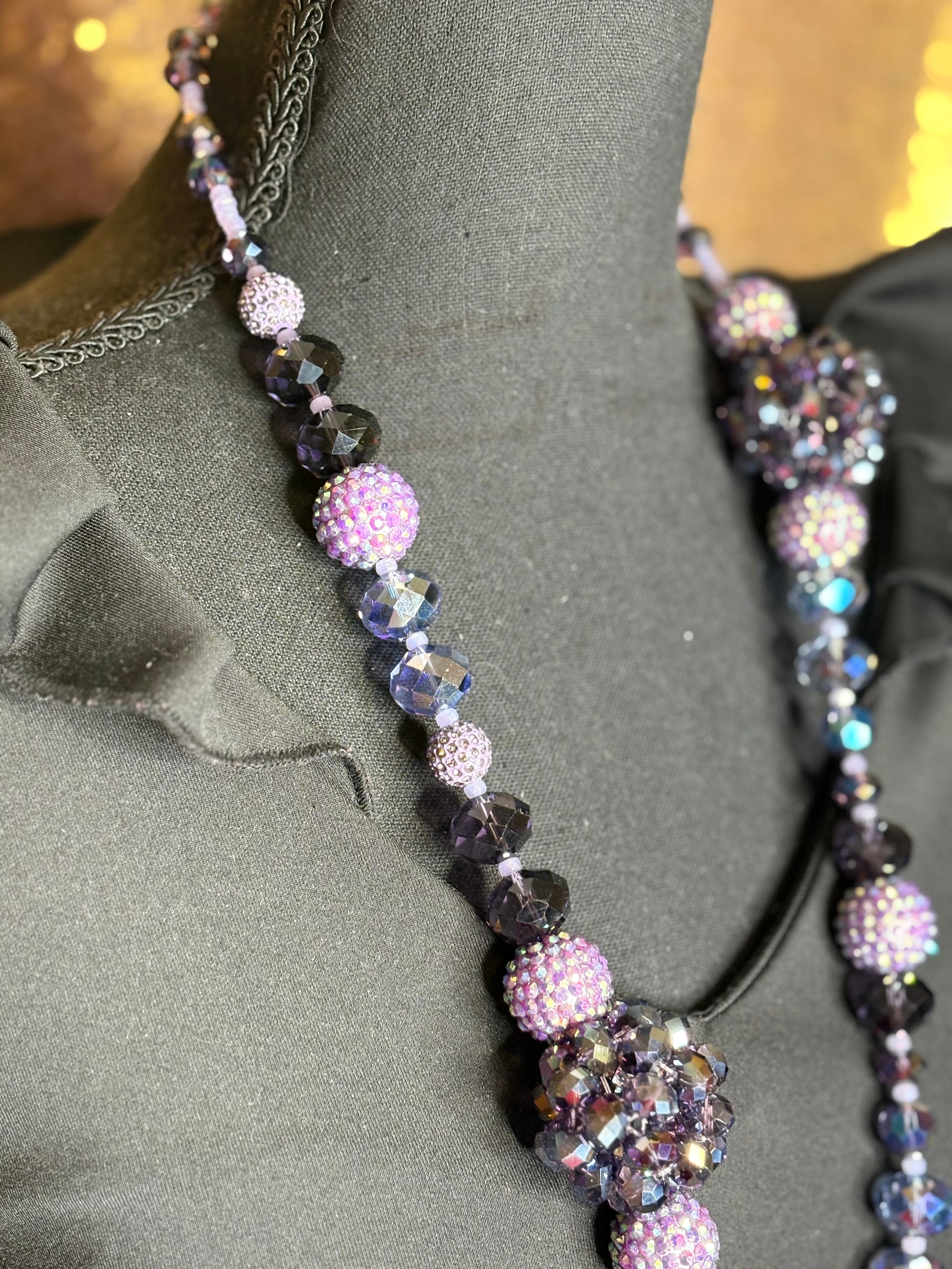This handmade tassel necklace was carefully crafted with beautiful crystal (or rhinestone) beads. The model is wearing a 25-inch necklace design, but it can be altered to be longer or shorter.