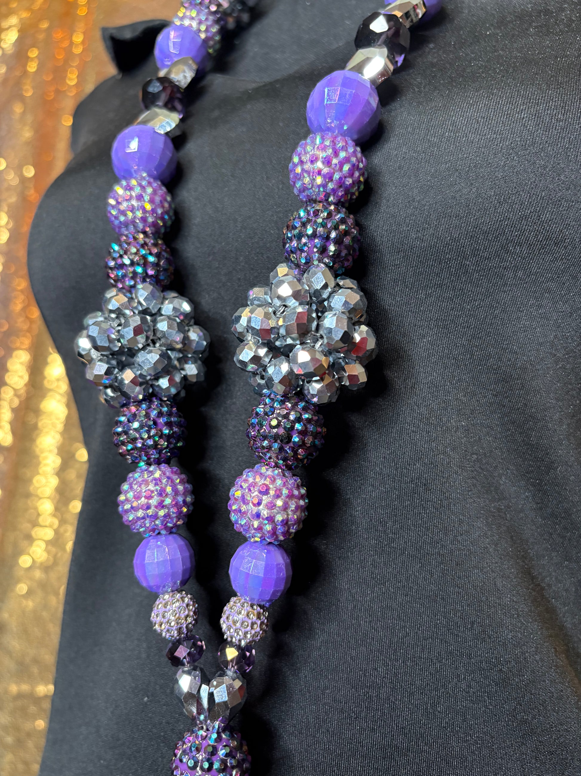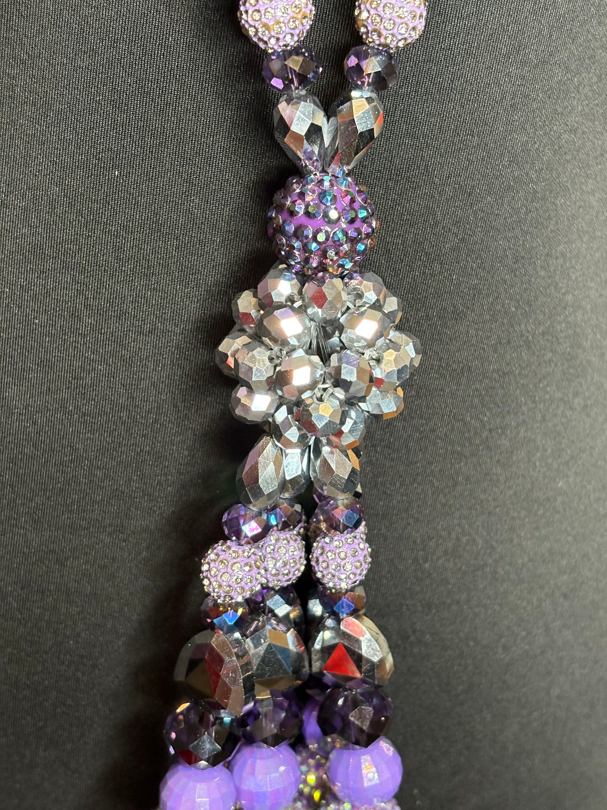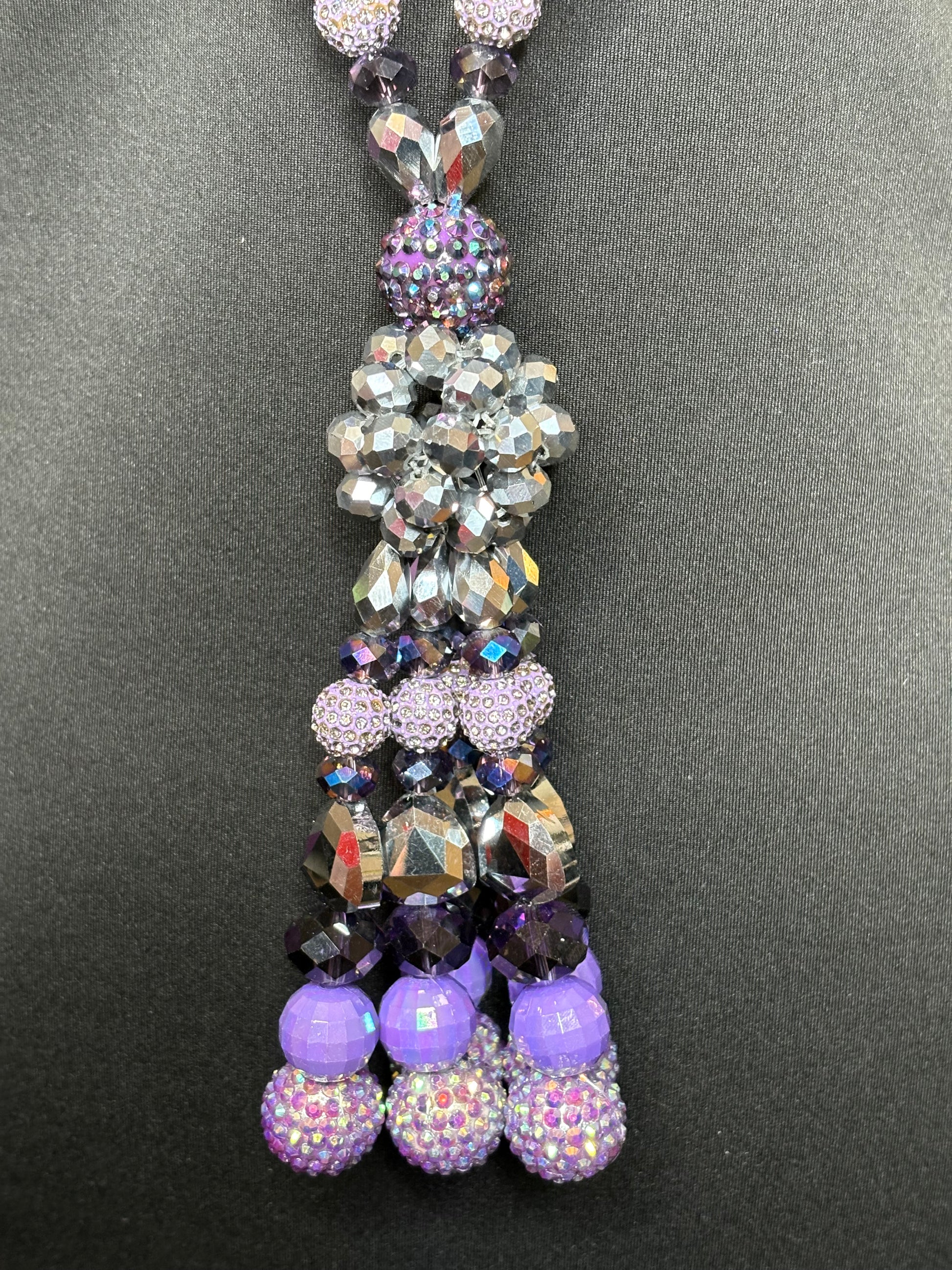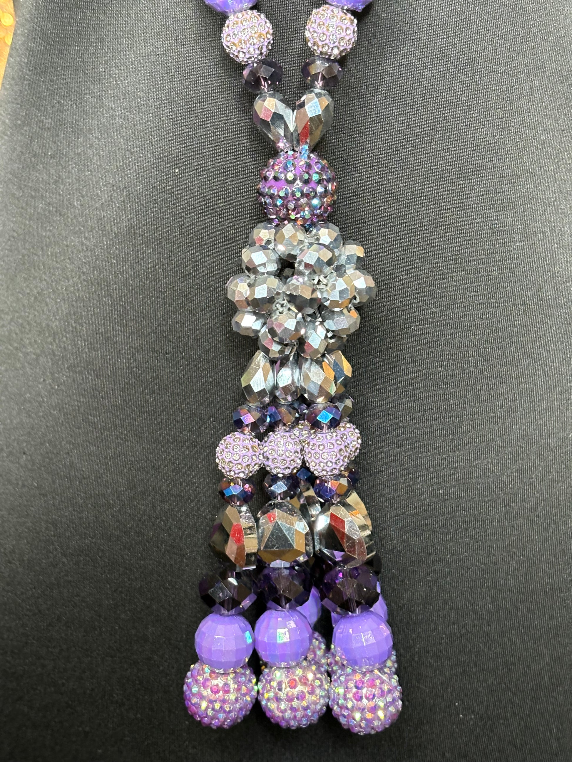 This handmade tassel necklace was carefully crafted with beautiful crystal (or rhinestone) beads. The model is wearing a 25-inch necklace design, but it can be altered to be longer or shorter.
