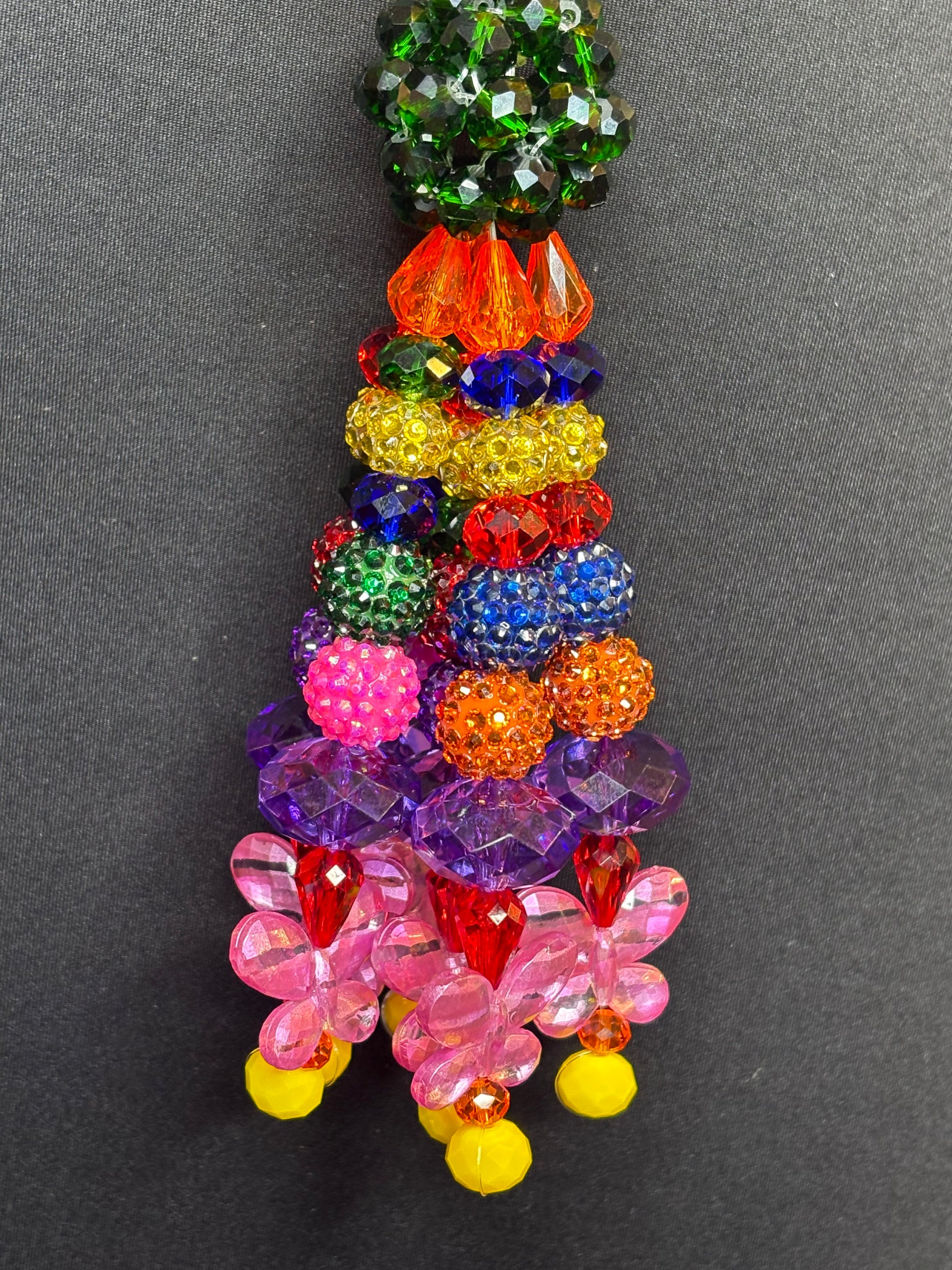 This handmade tassel necklace was carefully crafted with beautiful crystal (or rhinestone) beads. The model is wearing a 30-inch necklace design, but it can be altered to be longer or shorter.