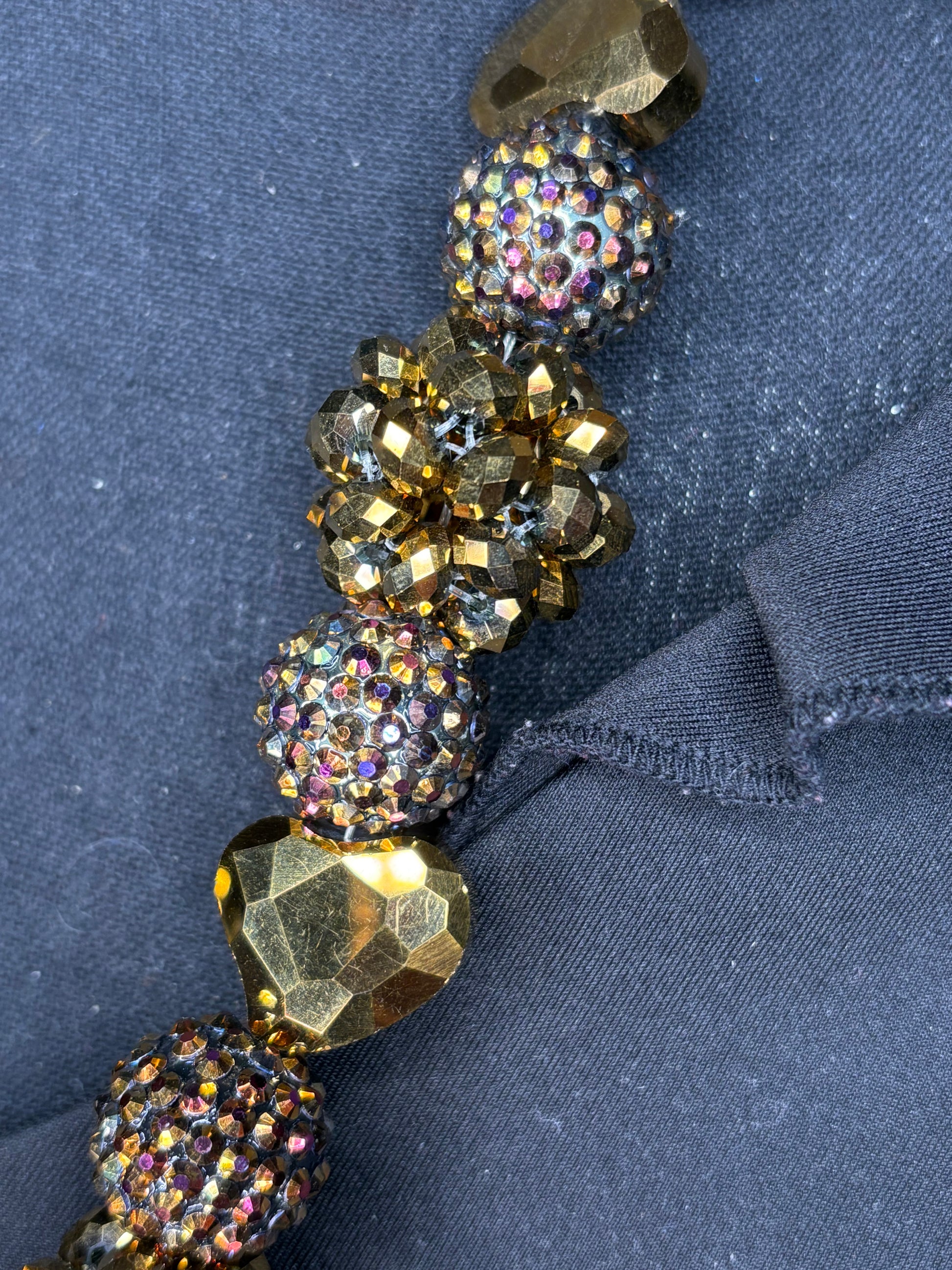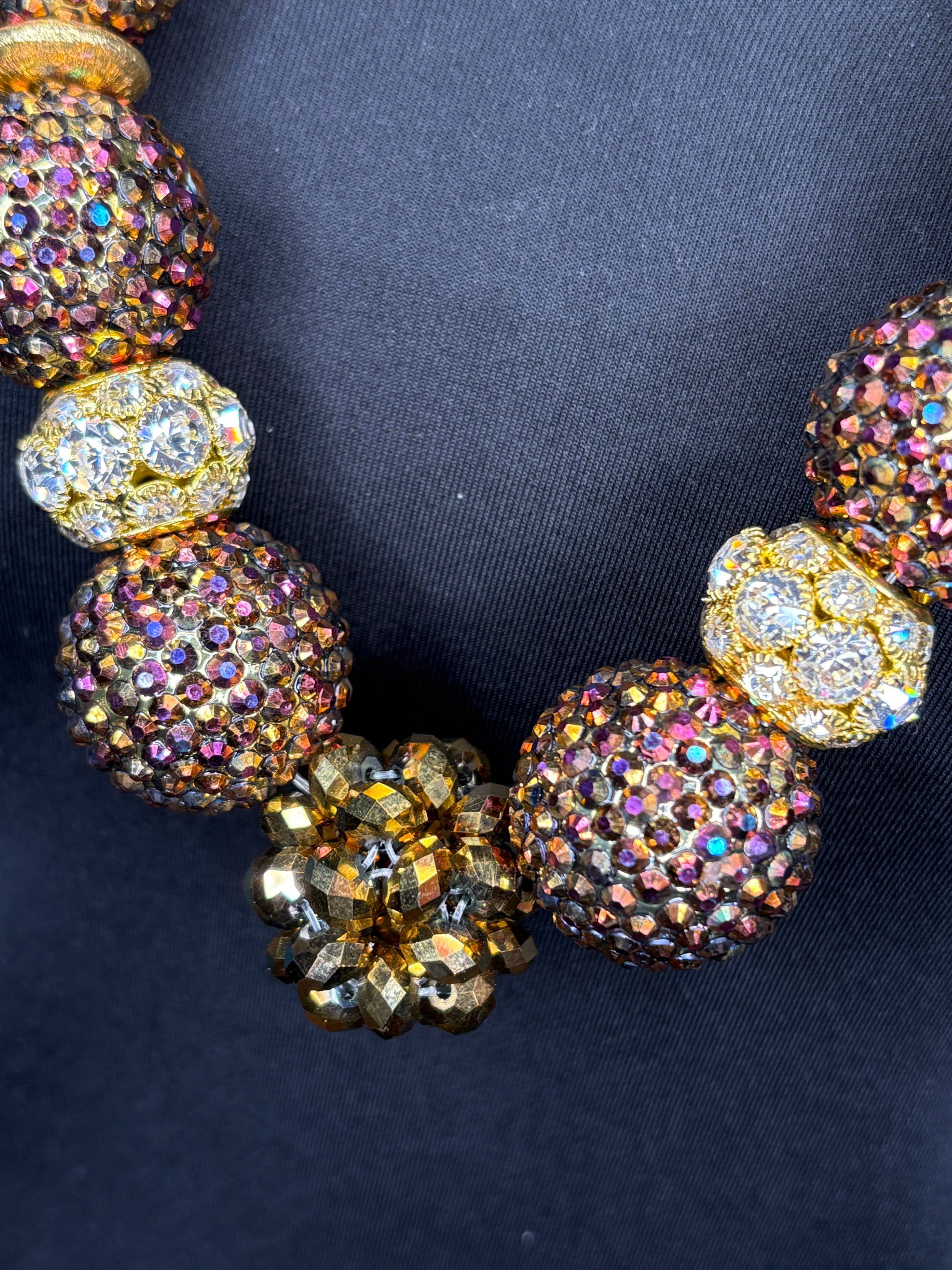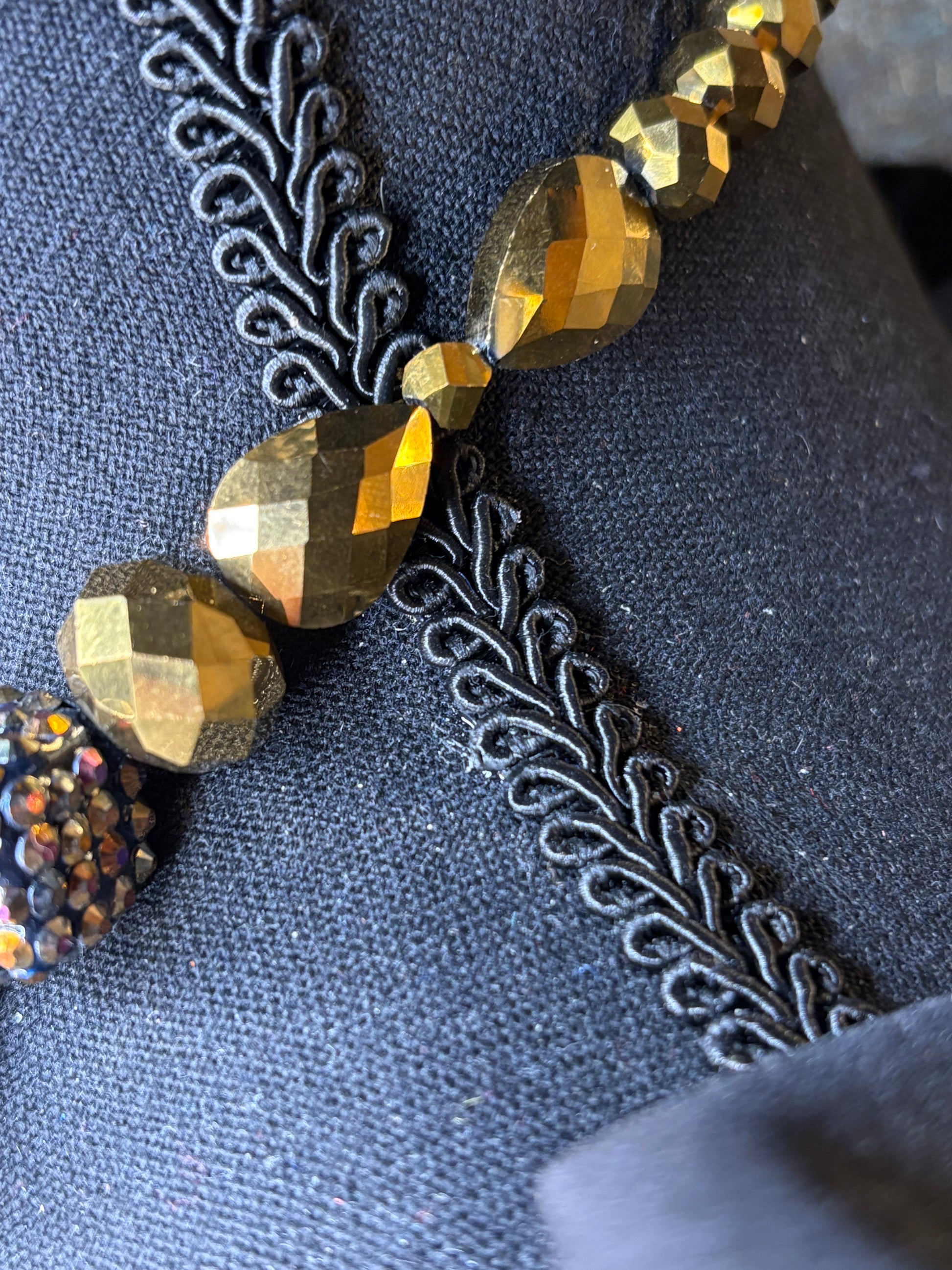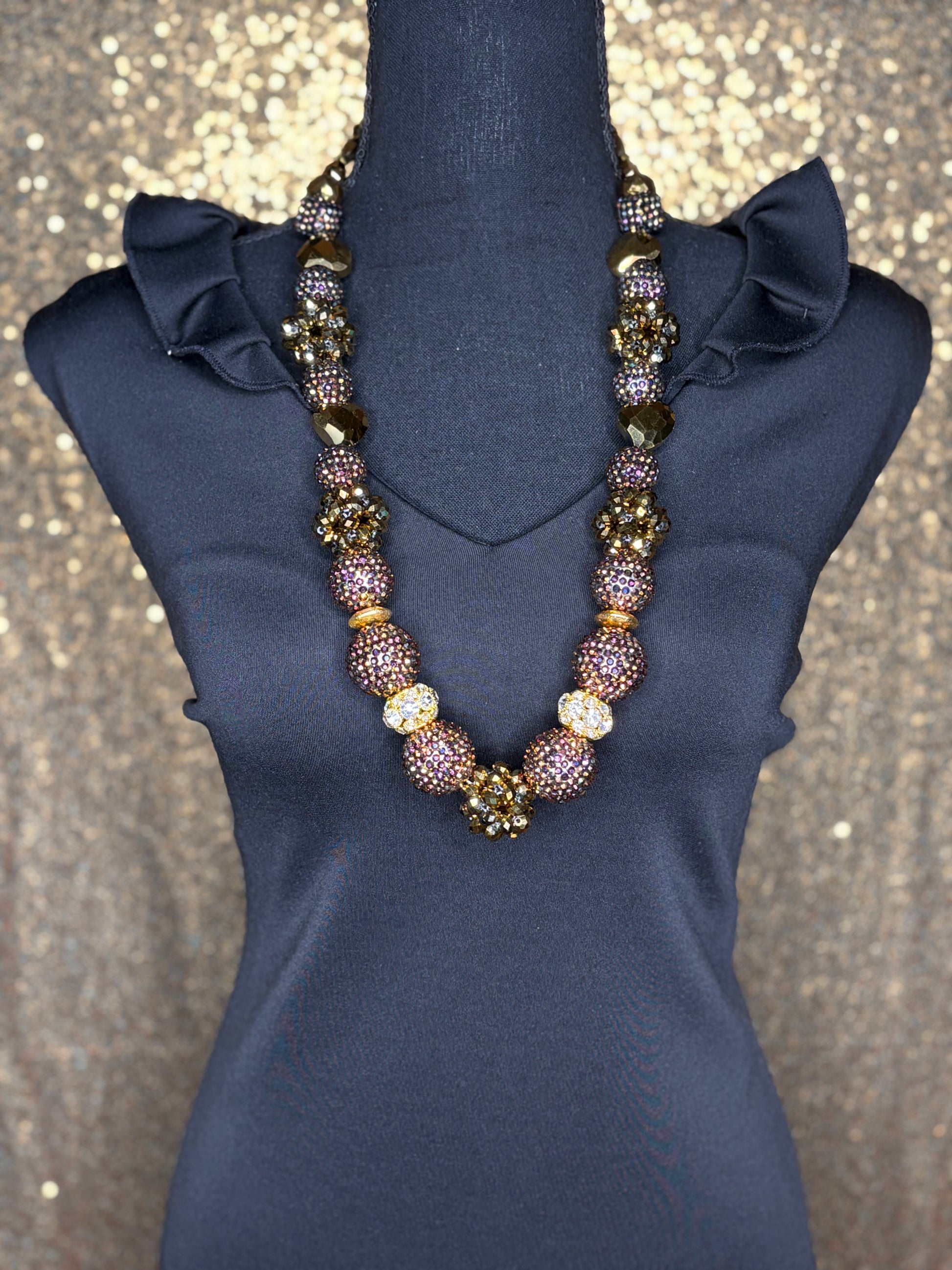 This handmade classic round necklace was carefully crafted with beautiful crystal (or rhinestone) beads. The model is wearing a 15-inch necklace design, but it can be altered to be longer or shorter.
