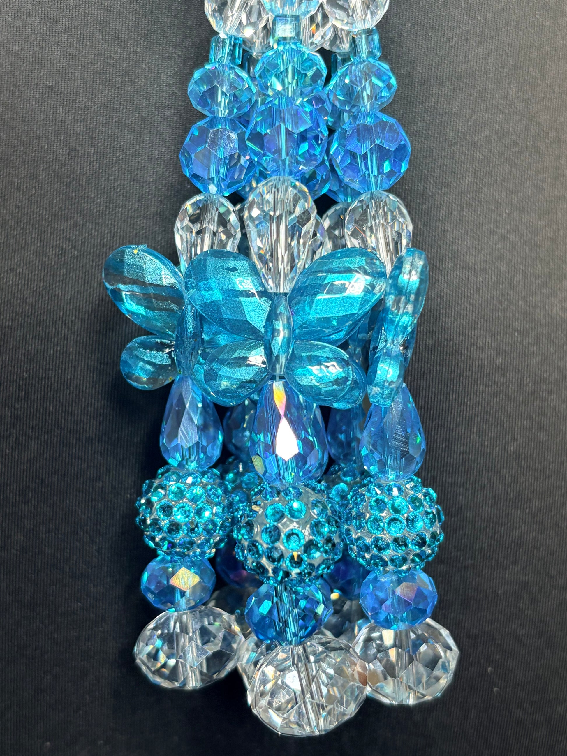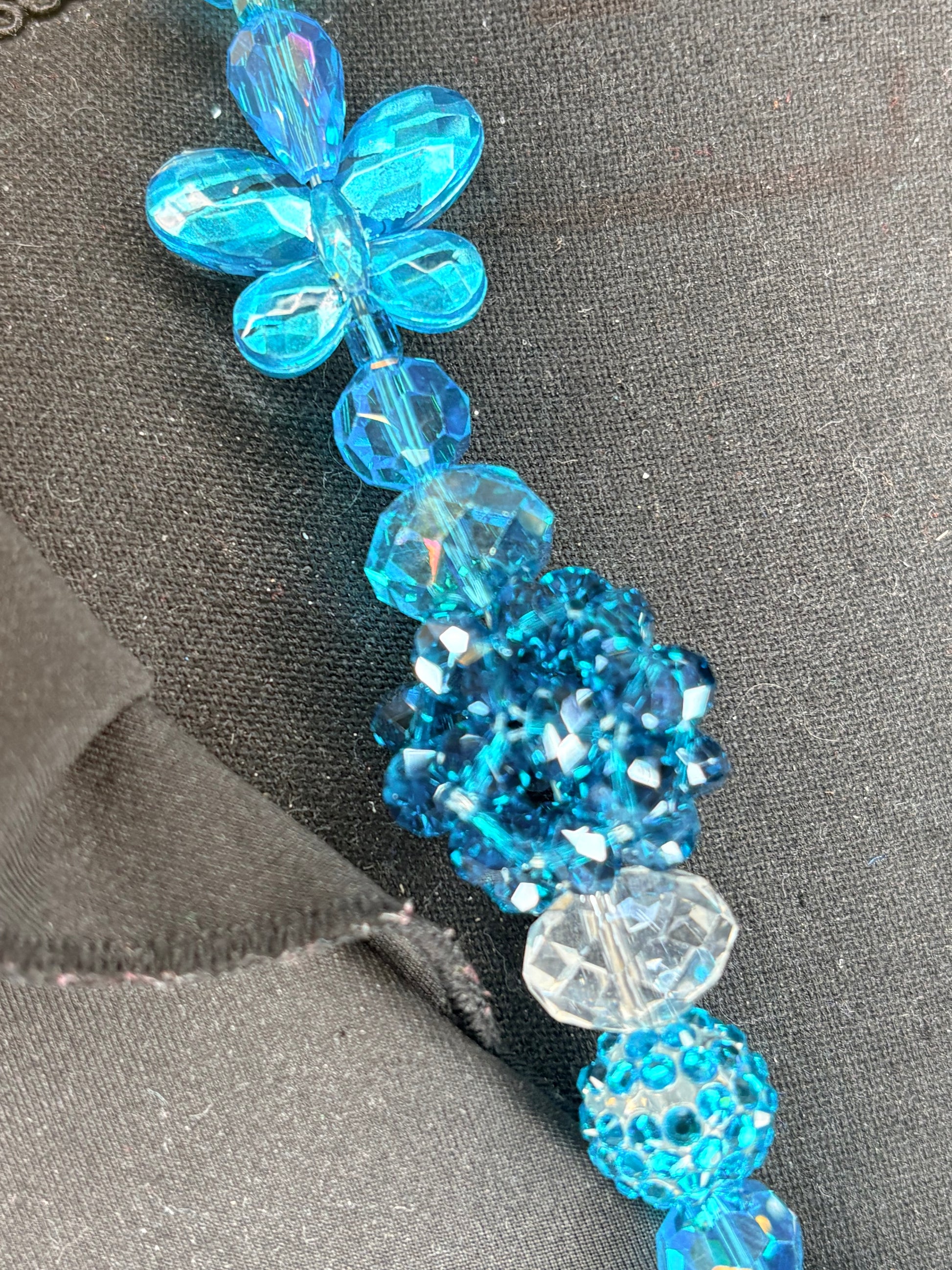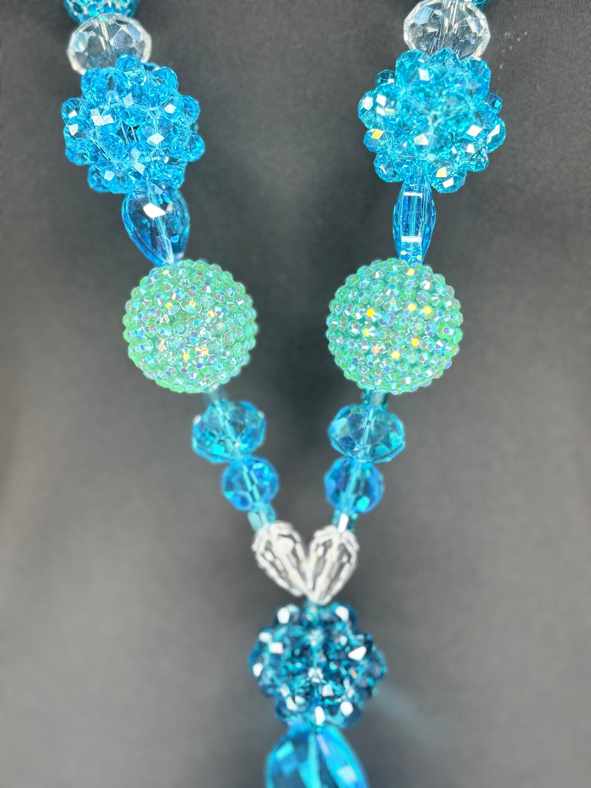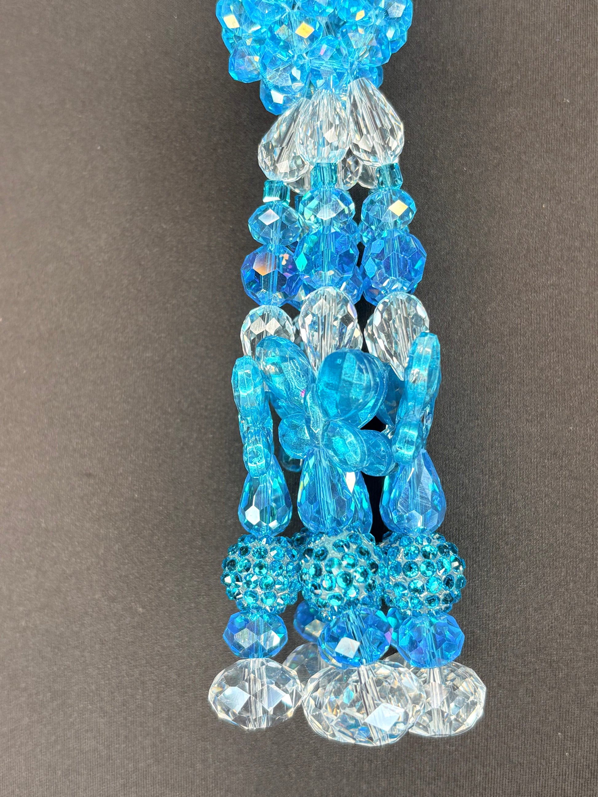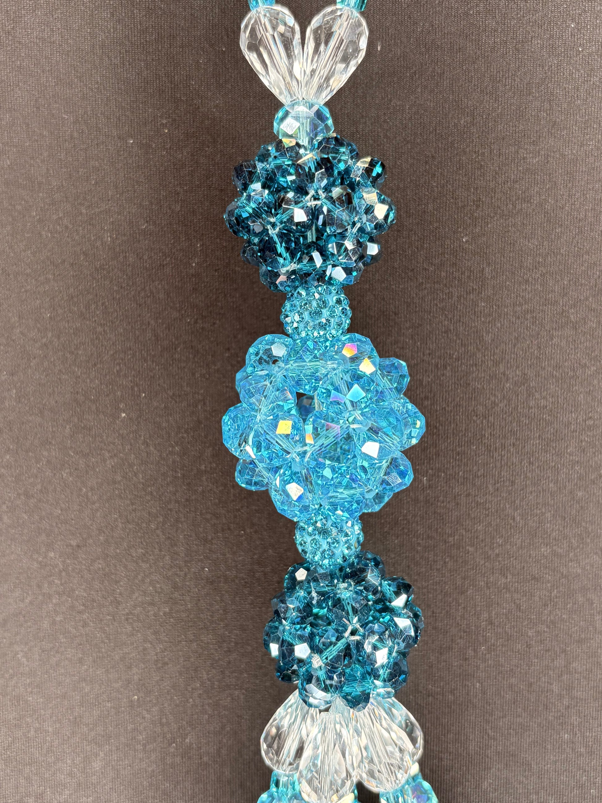 This handmade tassel necklace was carefully crafted with beautiful crystal (or rhinestone) beads. The model is wearing a 35-inch necklace design, but it can be altered to be longer or shorter.
